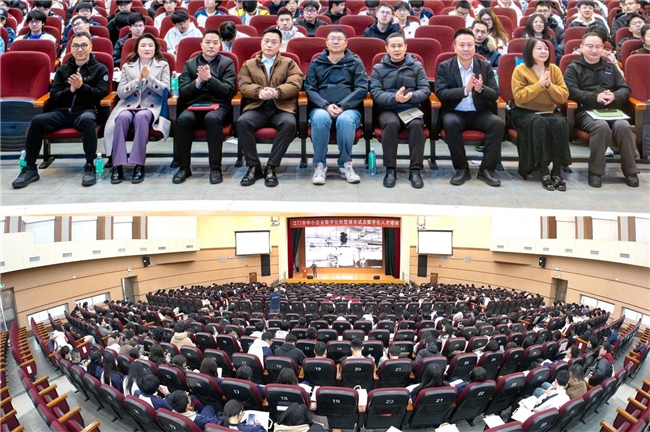 2026年1月8日,江门市第七期中小企业数字化转型人才培训班在五邑大学吕志和礼堂正式开班。作为江门市获批国家级中小企业数字化转型试点城市后的首批重点人才工程,本期培训由江门市工业和信息化局牵头,五邑大学培训中心、创新创业学院、学生处、电子与信息工程学院与广东网联天下科技有限公司联合承办,旨在深化产教融合机制,为本地产业数字化升级规模化、系统化培养紧缺型实战人才。来自政府部门、高校、企业及参训师生代表1200多人参加了开班仪式。