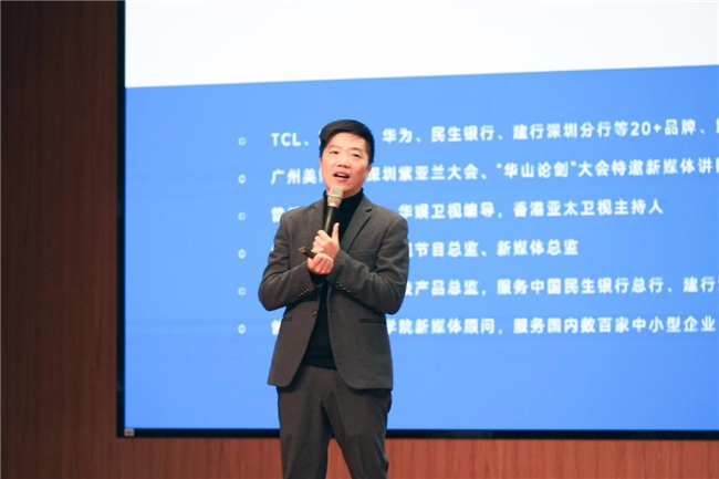 开班仪式后,首门核心课程《AI时代的企业变革与职业生涯规划》随即开讲。课程由AI效能提升与新媒体营销实战专家廖宏主讲,其拥有十五年数字化实战经验与多项头部科技企业高级AI认证,曾为众多知名企业提供转型培训。课程旨在帮助学员深度理解AI技术前沿,并将其融入个人职业规划与企业变革实践。