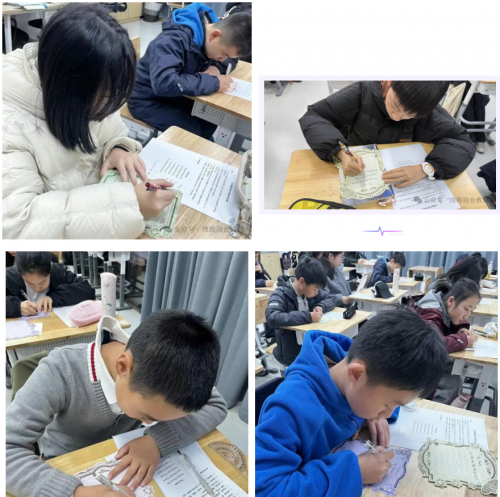 比赛现场,同学们神情专注,姿态端正,书写出英文字母的韵律与节奏。每个字母的倾斜度、字母间的间隔、行文连贯性,皆体现出他们对书写规范的重视与理解。